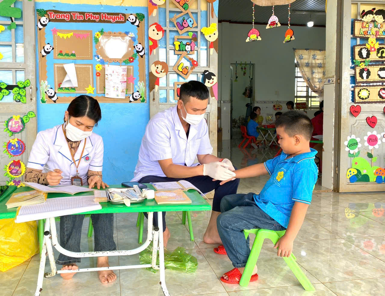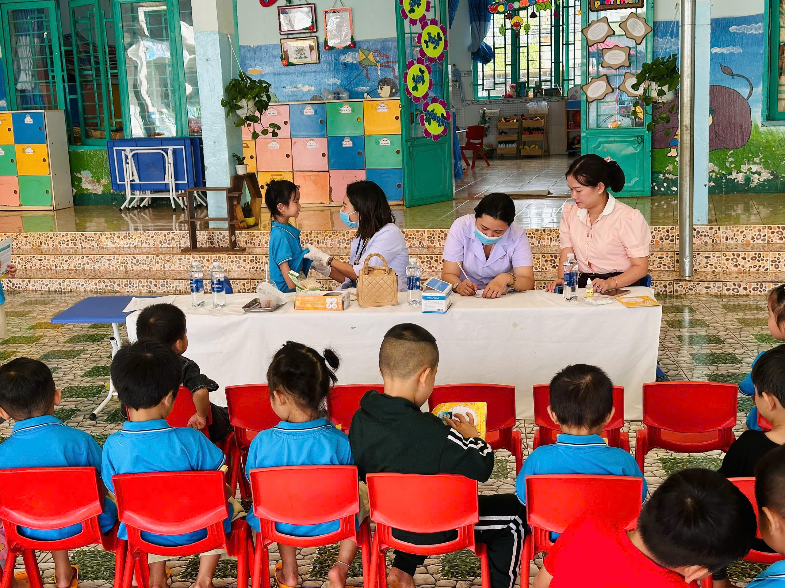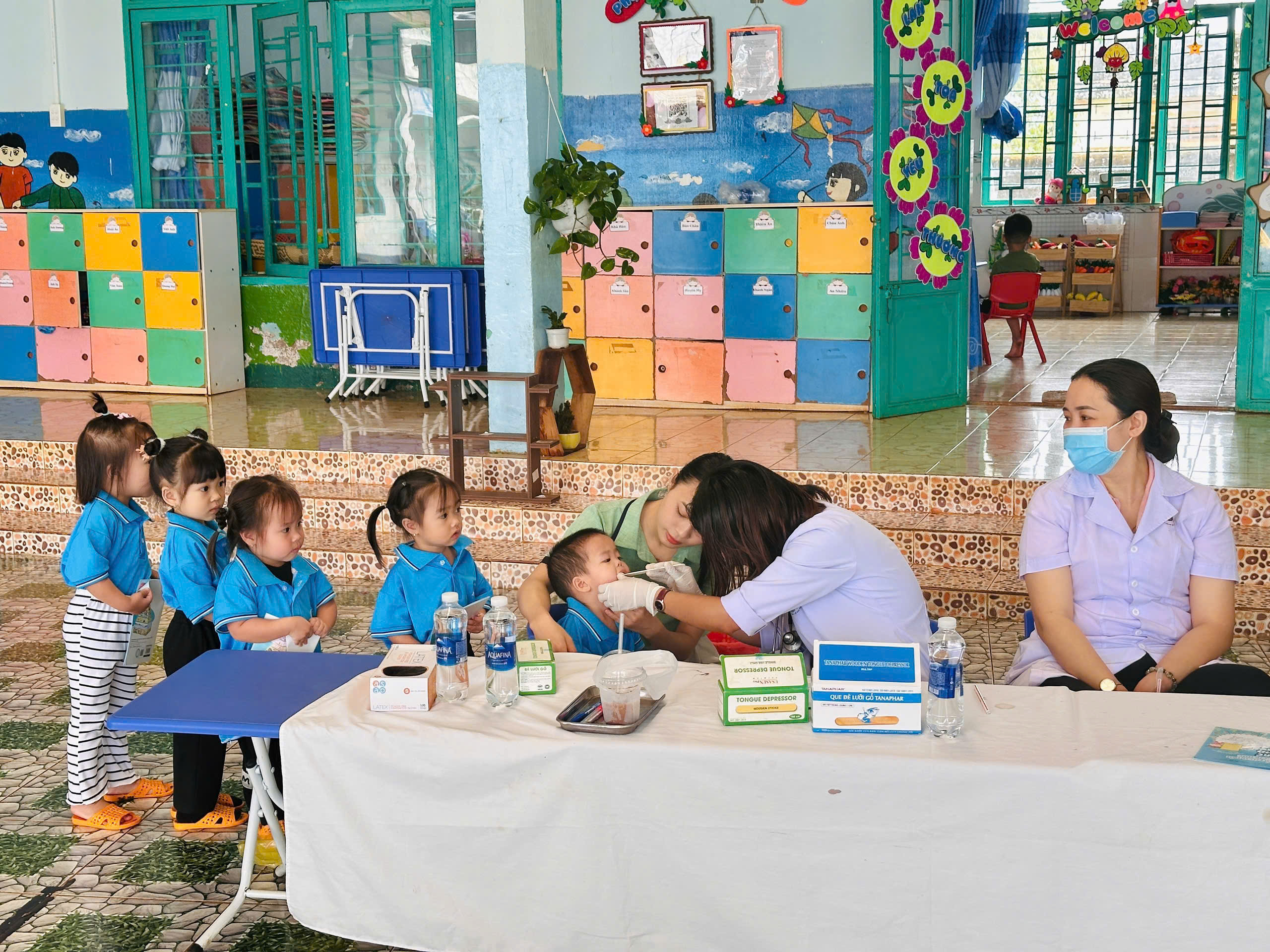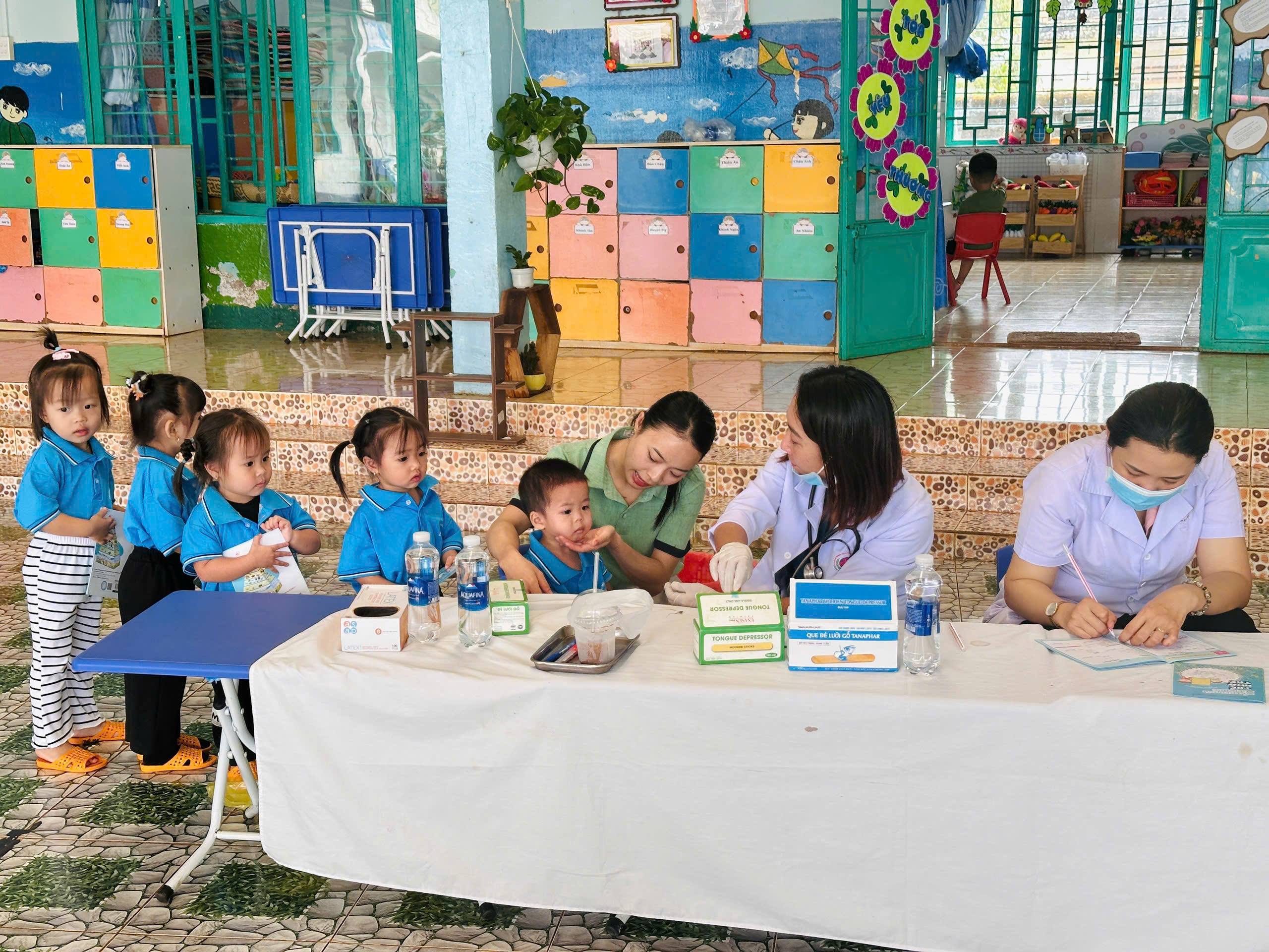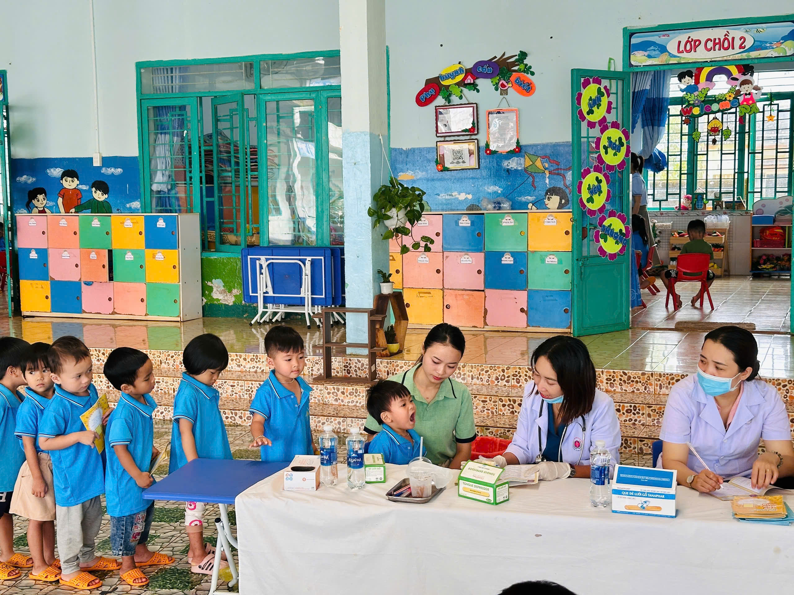Sáng ngày 31/10/2025, Trường Mầm non Tạ Thị Kiều đã phối hợp cùng Trạm Y tế xã Trường Xuân tổ chức buổi khám sức khỏe định kỳ cho toàn thể trẻ trong trường tại các điểm Thôn 2, thôn 4 và thôn 11. Buổi khám nhằm giúp nhà trường và phụ huynh nắm bắt tình hình sức khỏe, chiều cao, cân nặng, thị lực, răng miệng… của các bé, từ đó có biện pháp chăm sóc, dinh dưỡng và giáo dục phù hợp. Với tinh thần trách nhiệm. các y bác sĩ đã làm việc tận tình, chu đáo; các cô giáo hỗ trợ và động viên để các bé cảm thấy vui vẻ, thoải mái trong suốt quá trình khám. Nhà trường xin gửi lời cảm ơn chân thành đến đội ngũ y bác sĩ Trạm Y tế xã Trường Xuân đã luôn đồng hành cùng trường trong công tác chăm sóc sức khỏe cho trẻ.