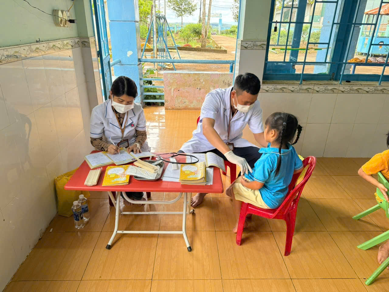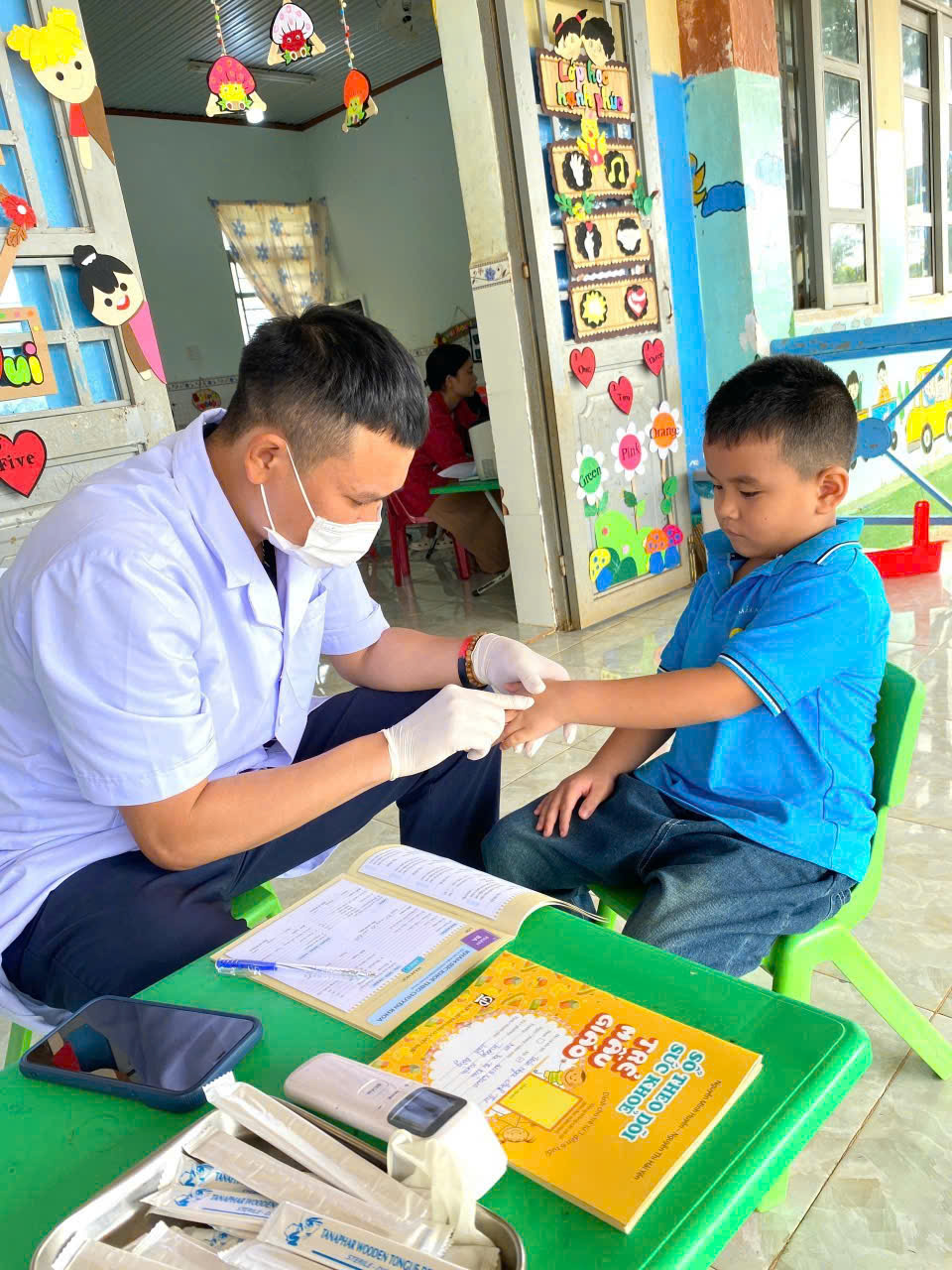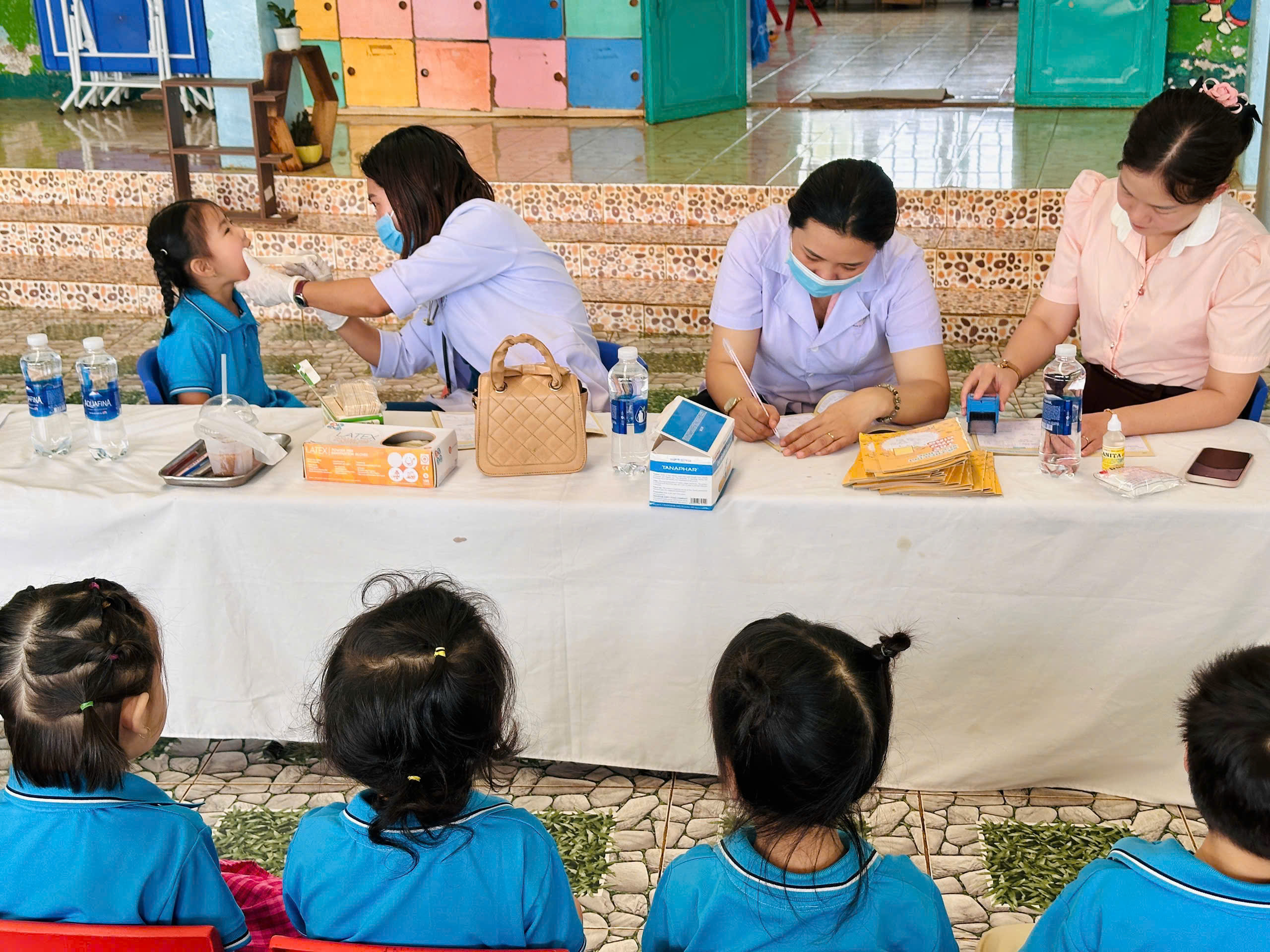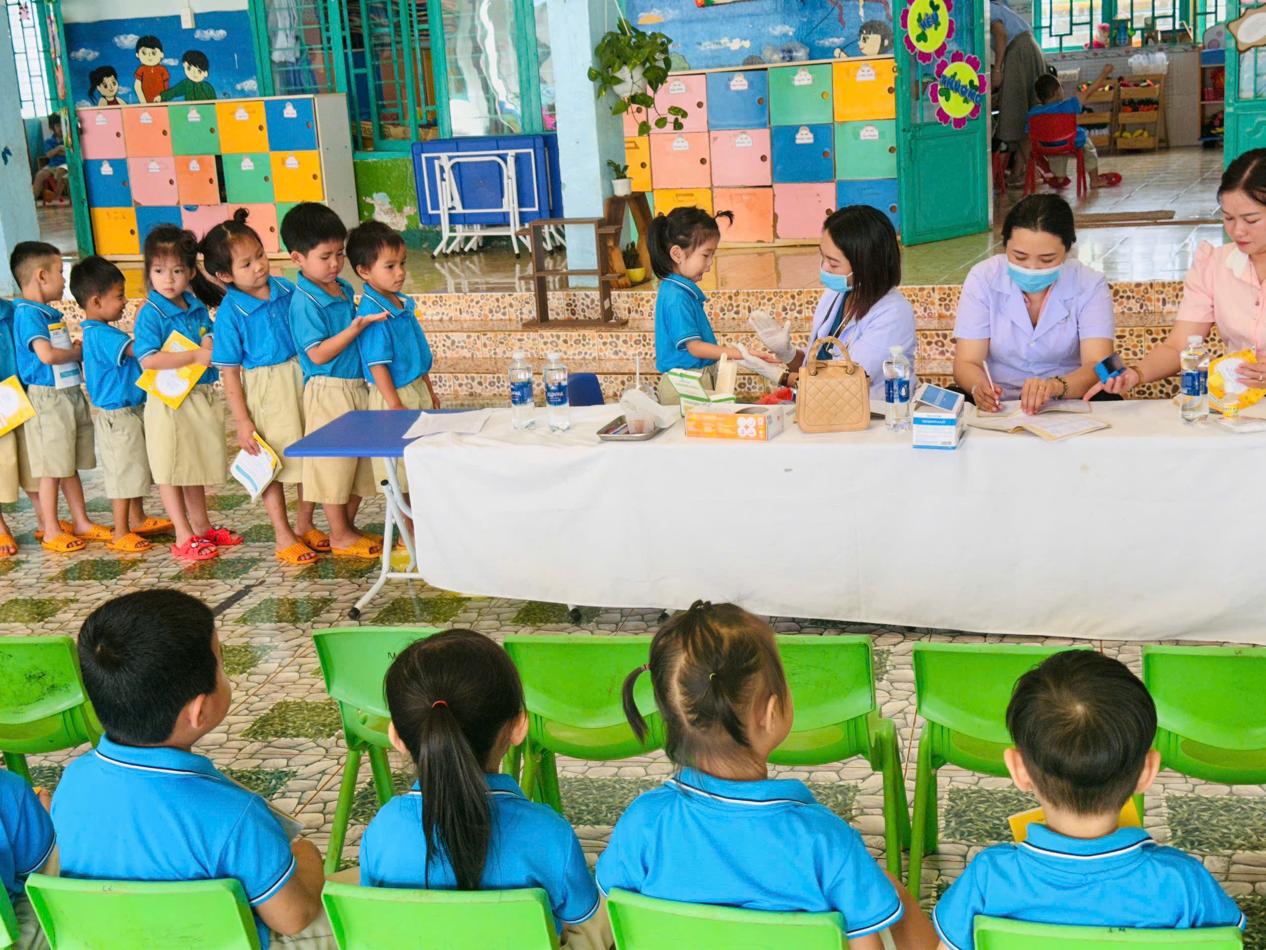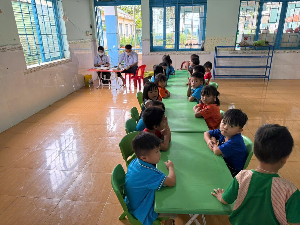 Sáng ngày 31/10/2025, Trường Mầm non Tạ Thị Kiều đã phối hợp cùng Trạm Y tế xã Trường Xuân tổ chức buổi khám sức khỏe định kỳ cho toàn thể trẻ trong trường tại các điểm Thôn 2, thôn 4 và thôn 11. Buổi khám nhằm giúp nhà trường và phụ huynh nắm bắt tình hình sức khỏe, chiều cao, cân nặng, thị lực, răng miệng… của các bé, từ đó có biện pháp chăm sóc, dinh dưỡng và giáo dục phù hợp. Với tinh thần trách nhiệm. các y bác sĩ đã làm việc tận tình, chu đáo; các cô giáo hỗ trợ và động viên để các bé cảm thấy vui vẻ, thoải mái trong suốt quá trình khám. Nhà trường xin gửi lời cảm ơn chân thành đến đội ngũ y bác sĩ Trạm Y tế xã Trường Xuân đã luôn đồng hành cùng trường trong công tác chăm sóc sức khỏe cho trẻ.