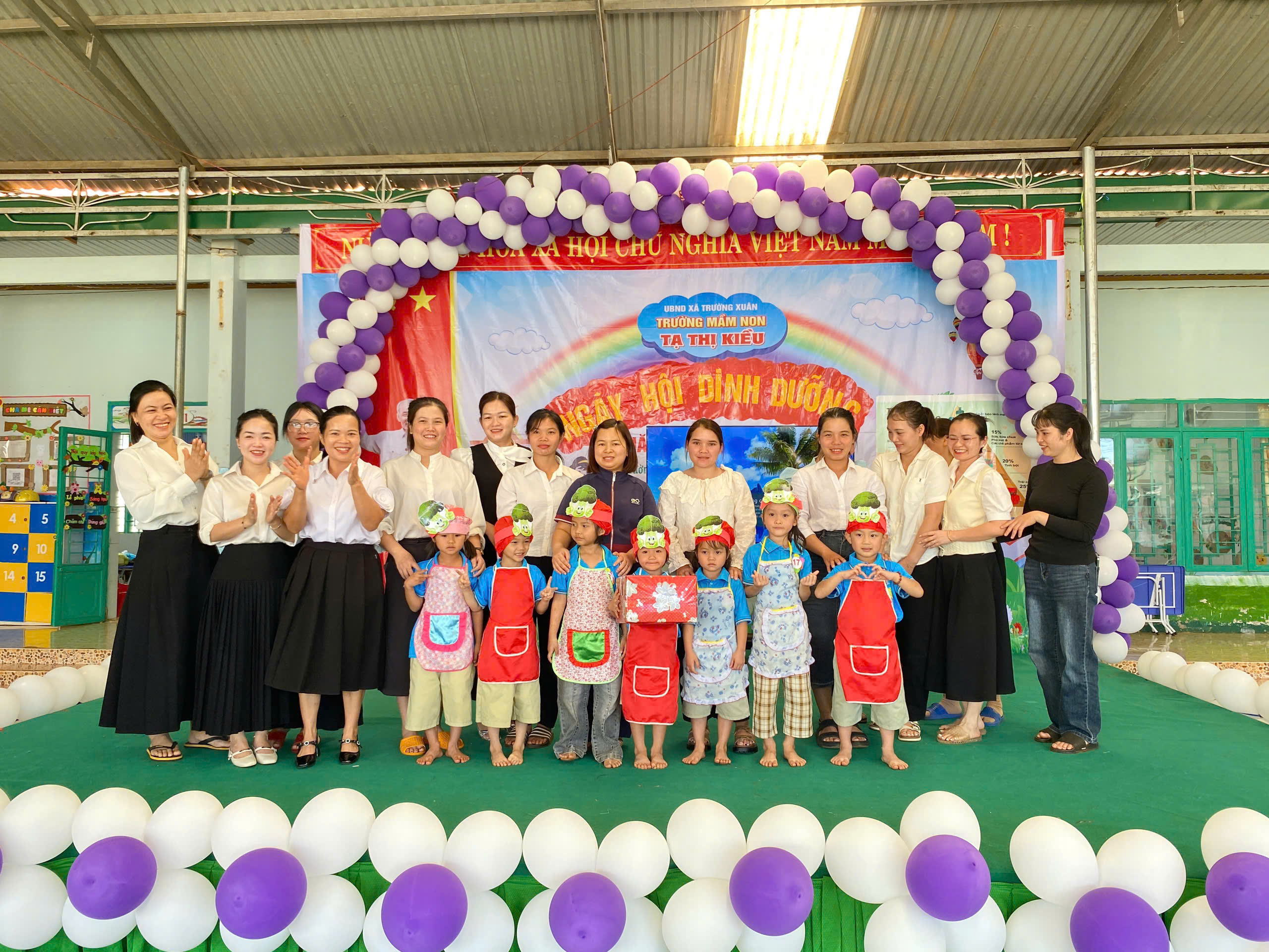 Thứ sáu, ngày 14 tháng 11 năm 2025, trường Mầm non Tạ Thị Kiều tổ chức thành công chuyên đề “Ngày hội Dinh dưỡng – Gia đình vui khỏe” với sự tham dự của Ban Giám hiệu nhà trường, đại diện các nhóm trẻ tư thục trên địa bàn xã gồm: Sao Sáng, Tuổi Thơ, Tuổi Hồng và Măng Non, cùng đông đảo phụ huynh và các bé.