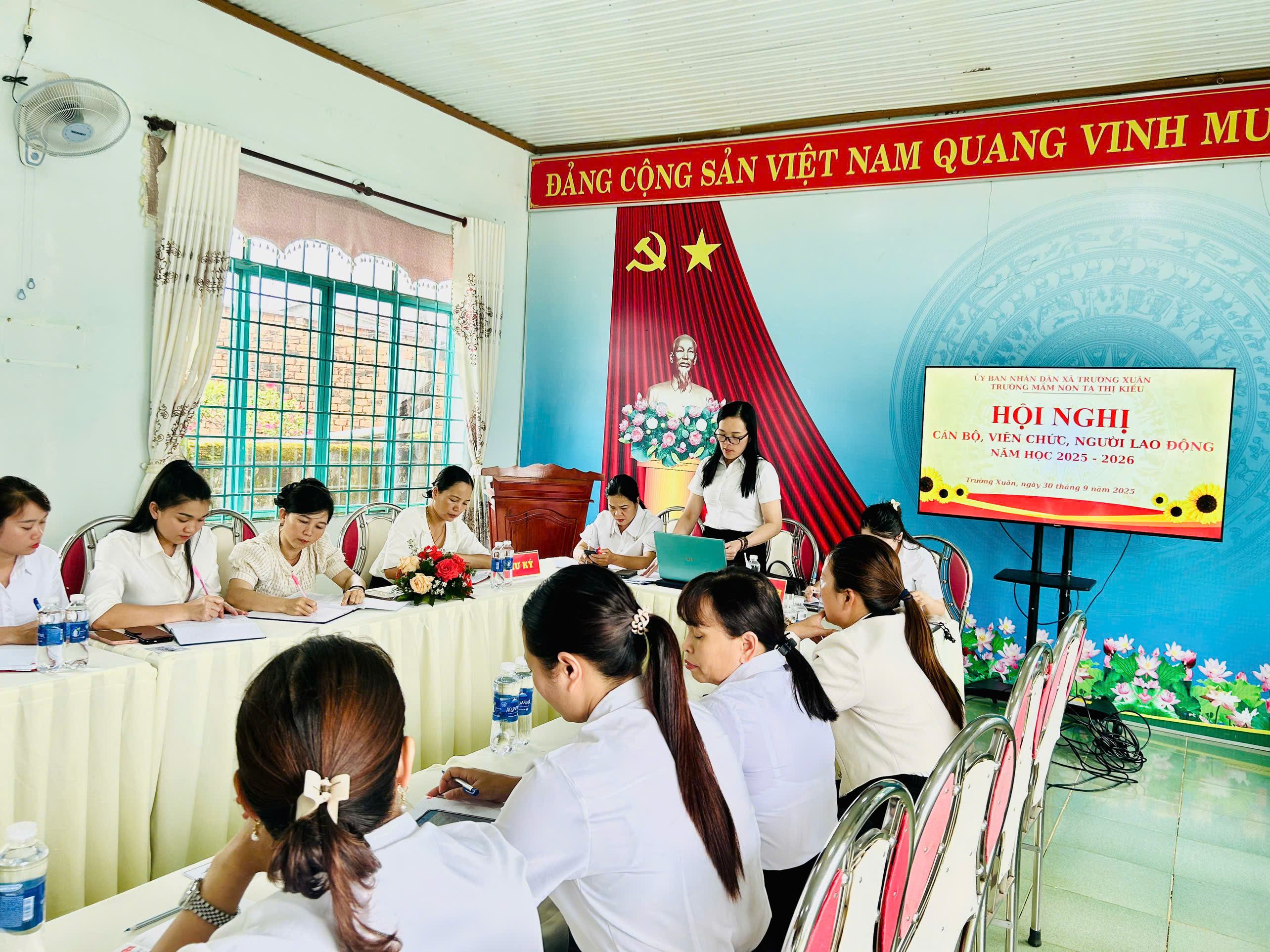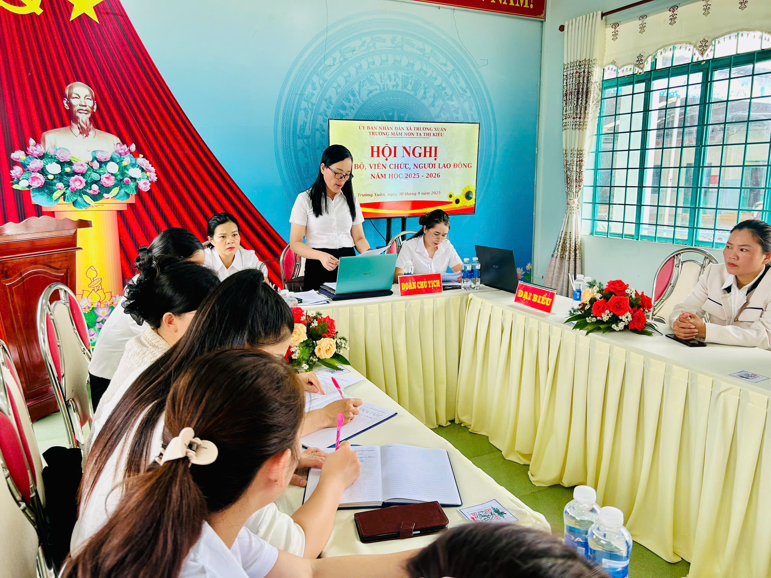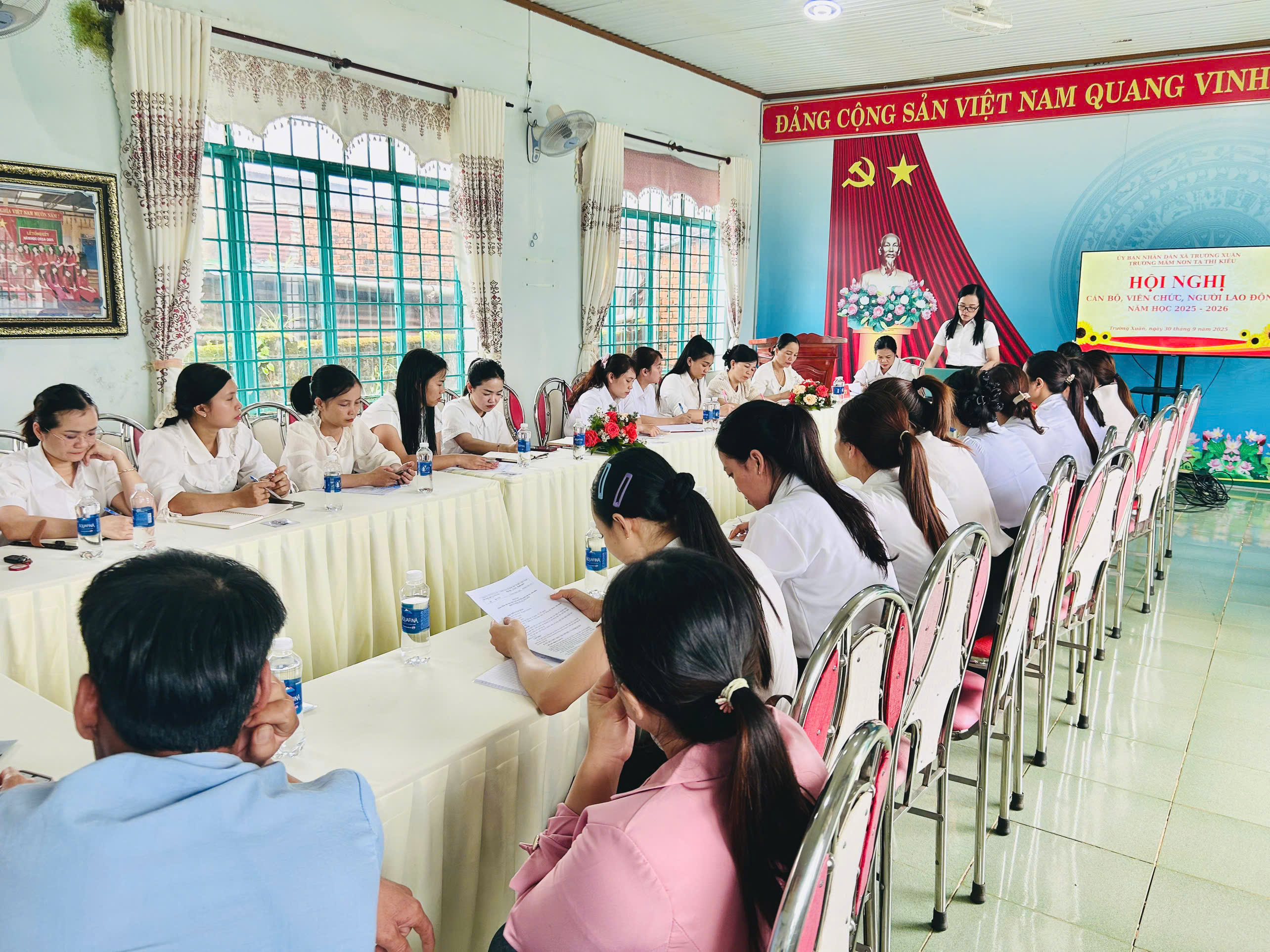 Hôm nay, Trường Mầm non Tạ Thị Kiều đã long trọng tổ chức Hội nghị cán bộ, viên chức, người lao động năm học 2025 – 2026. Đây là dịp để tập thể cán bộ, giáo viên, nhân viên nhà trường cùng nhìn lại những thành tích đã đạt được trong năm học 2024 – 2025, đồng thời thảo luận, đề ra phương hướng và giải pháp thực hiện nhiệm vụ trong năm học 2025 – 2026.