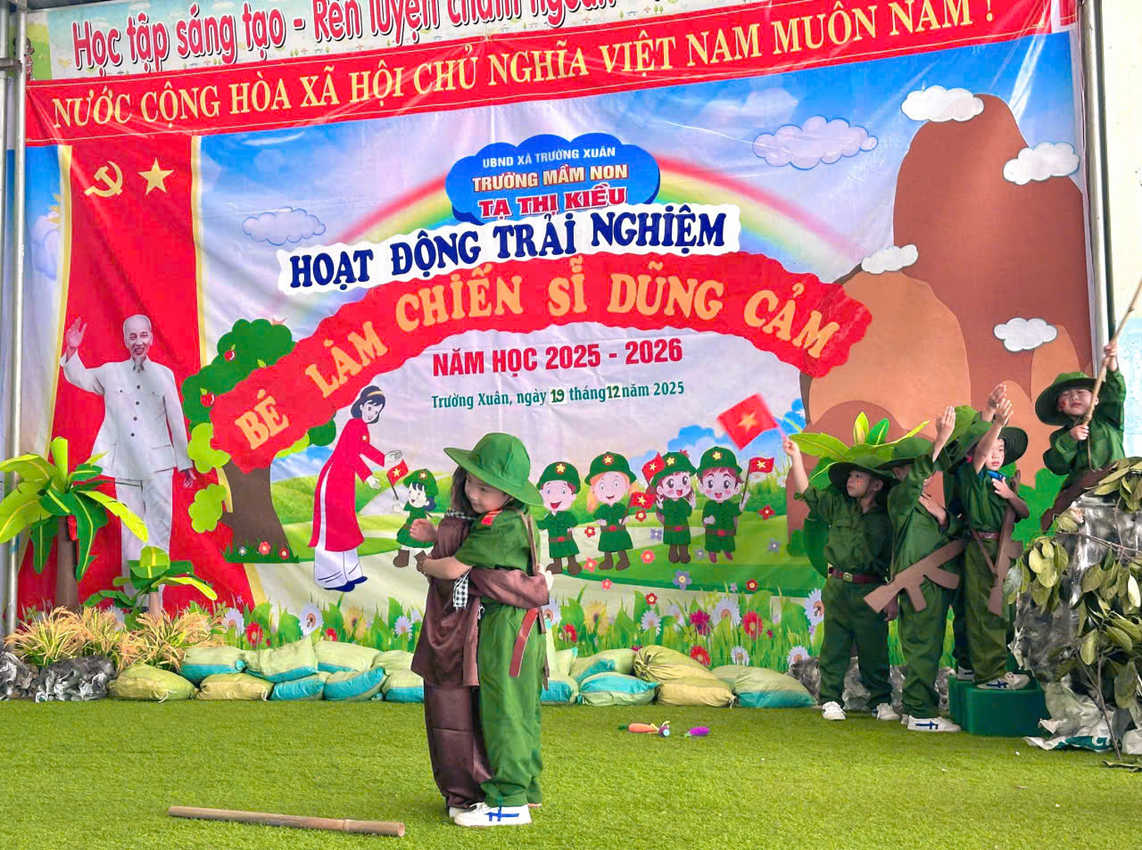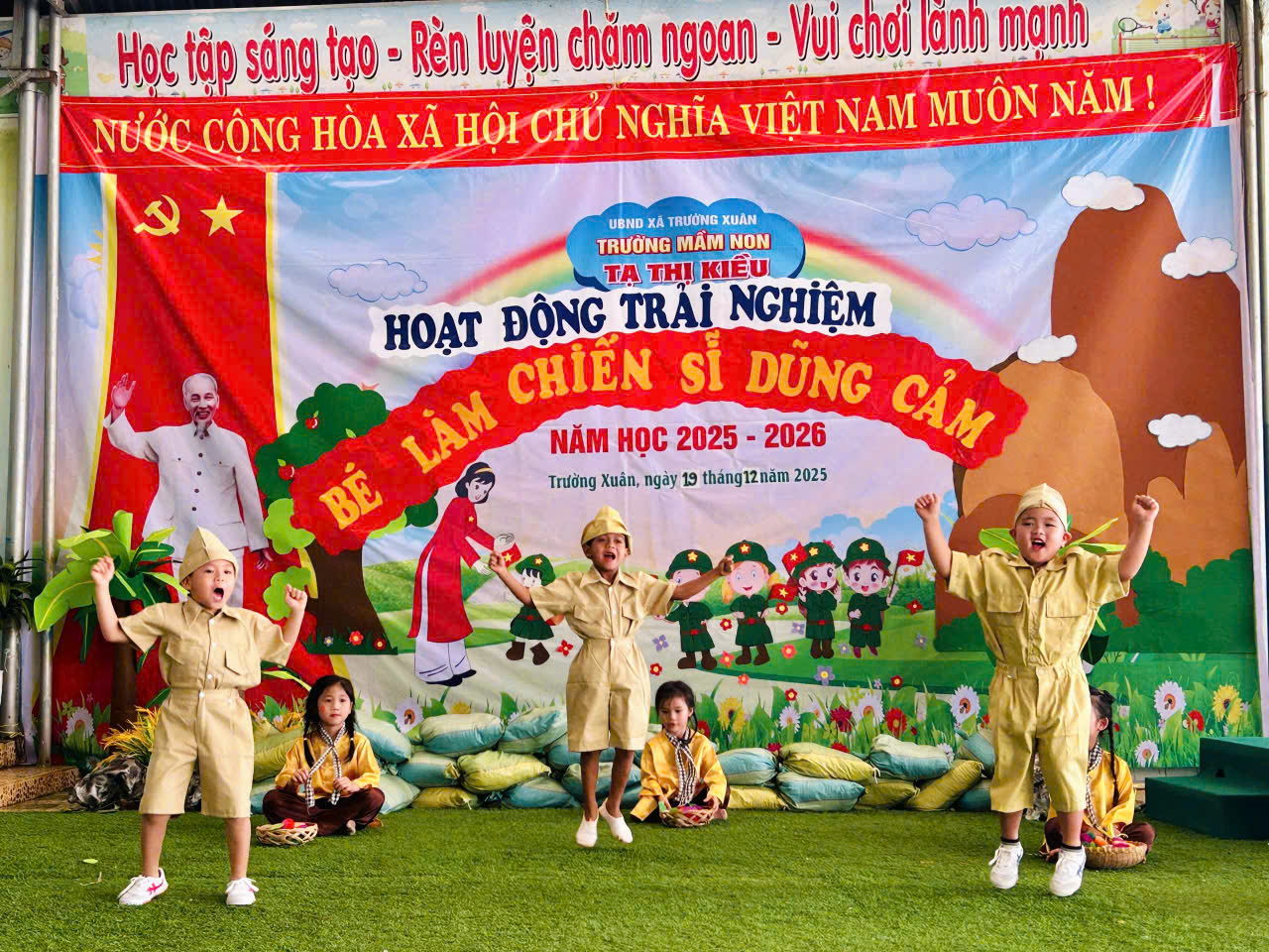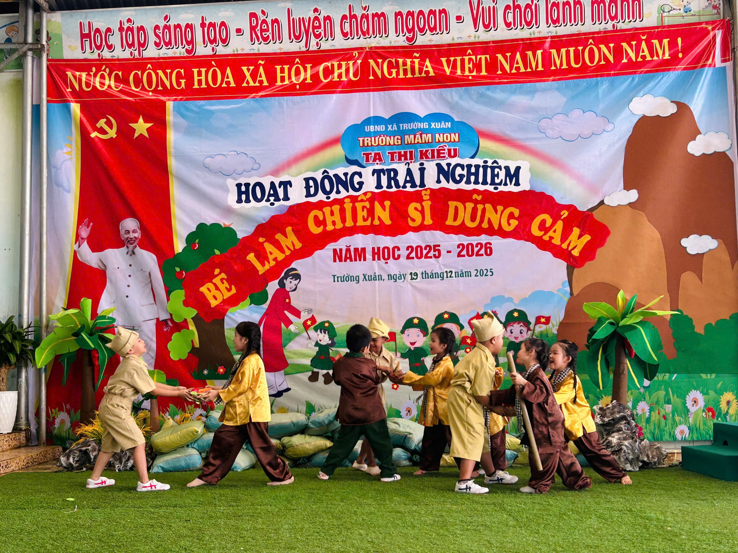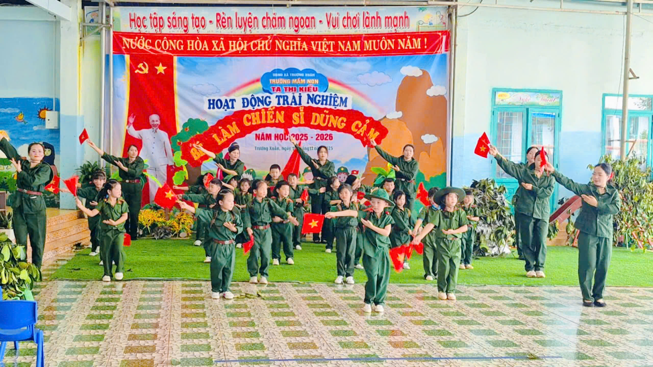 Sáng nay, Trường Mầm non Tạ Thị Kiều vui mừng tổ chức chuyên đề trải nghiệm “Bé làm chiến sĩ dũng cảm”, thiết thực chào mừng kỷ niệm 81 năm Ngày thành lập Quân đội Nhân dân Việt Nam (22/12/1944 – 22/12/2025), với sự tham dự của đại diện các nhóm, lớp mầm non tư thục trên địa bàn xã, quý phụ huynh, cán bộ quản lý, giáo viên và toàn thể các bé yêu.
