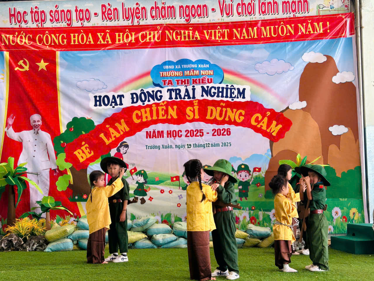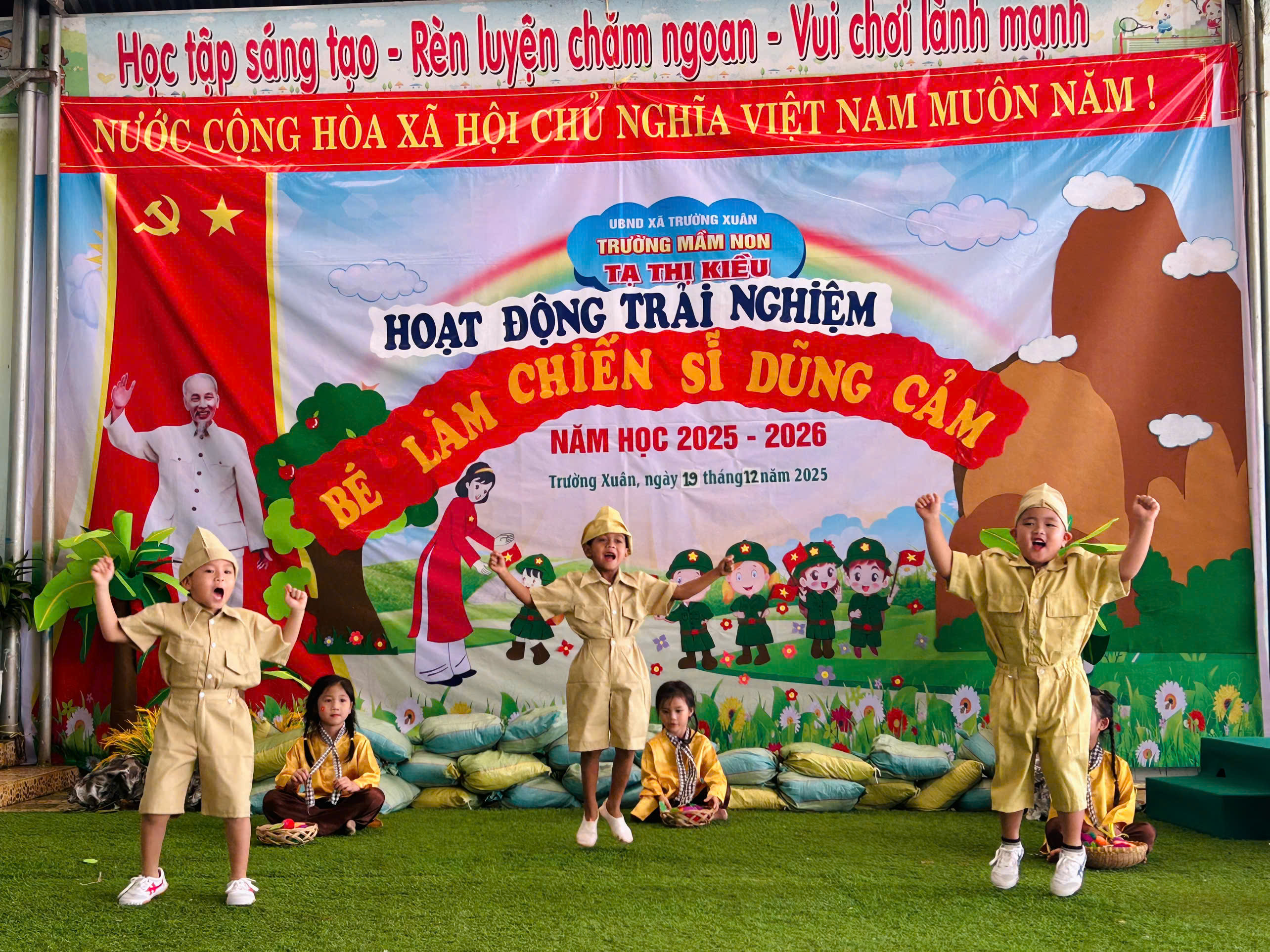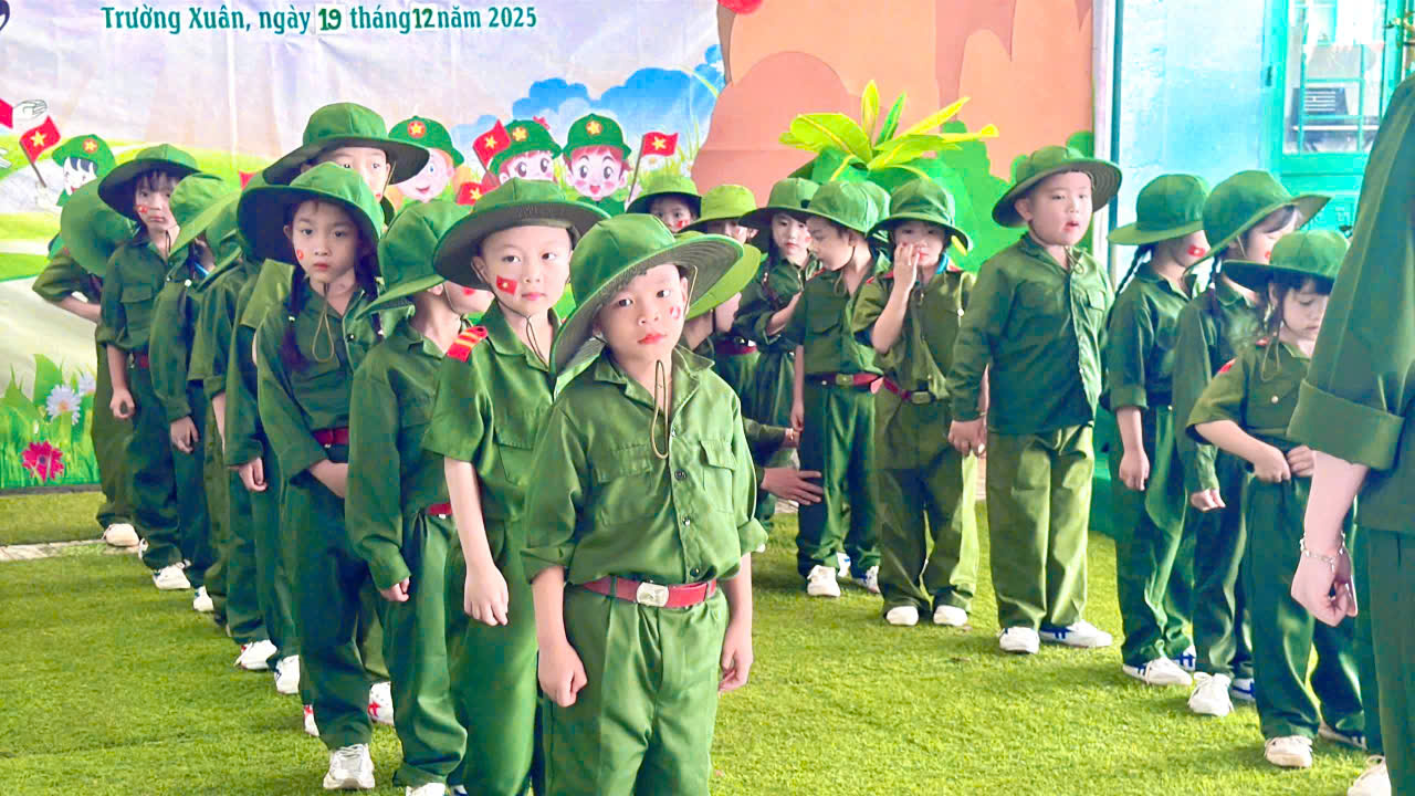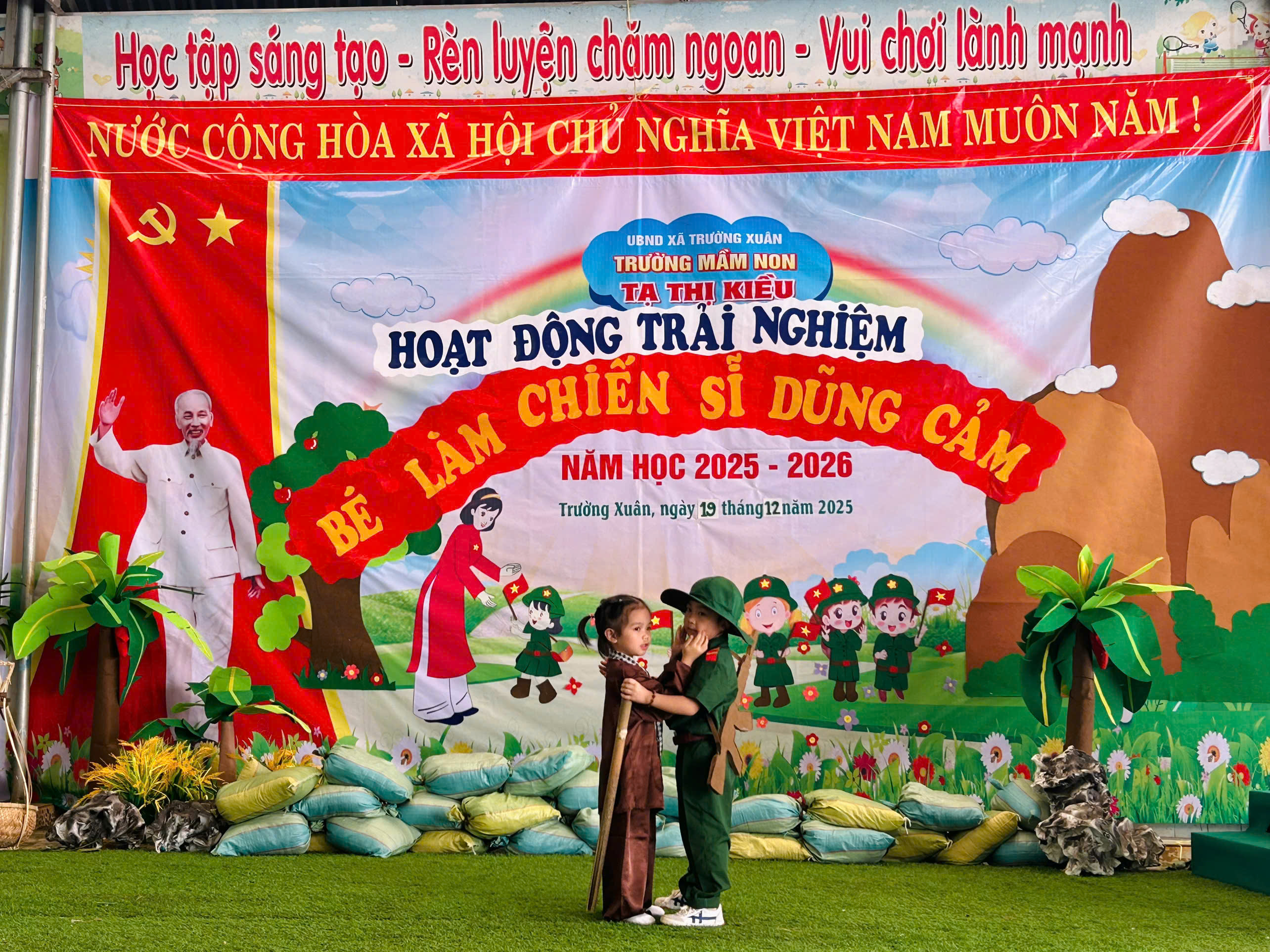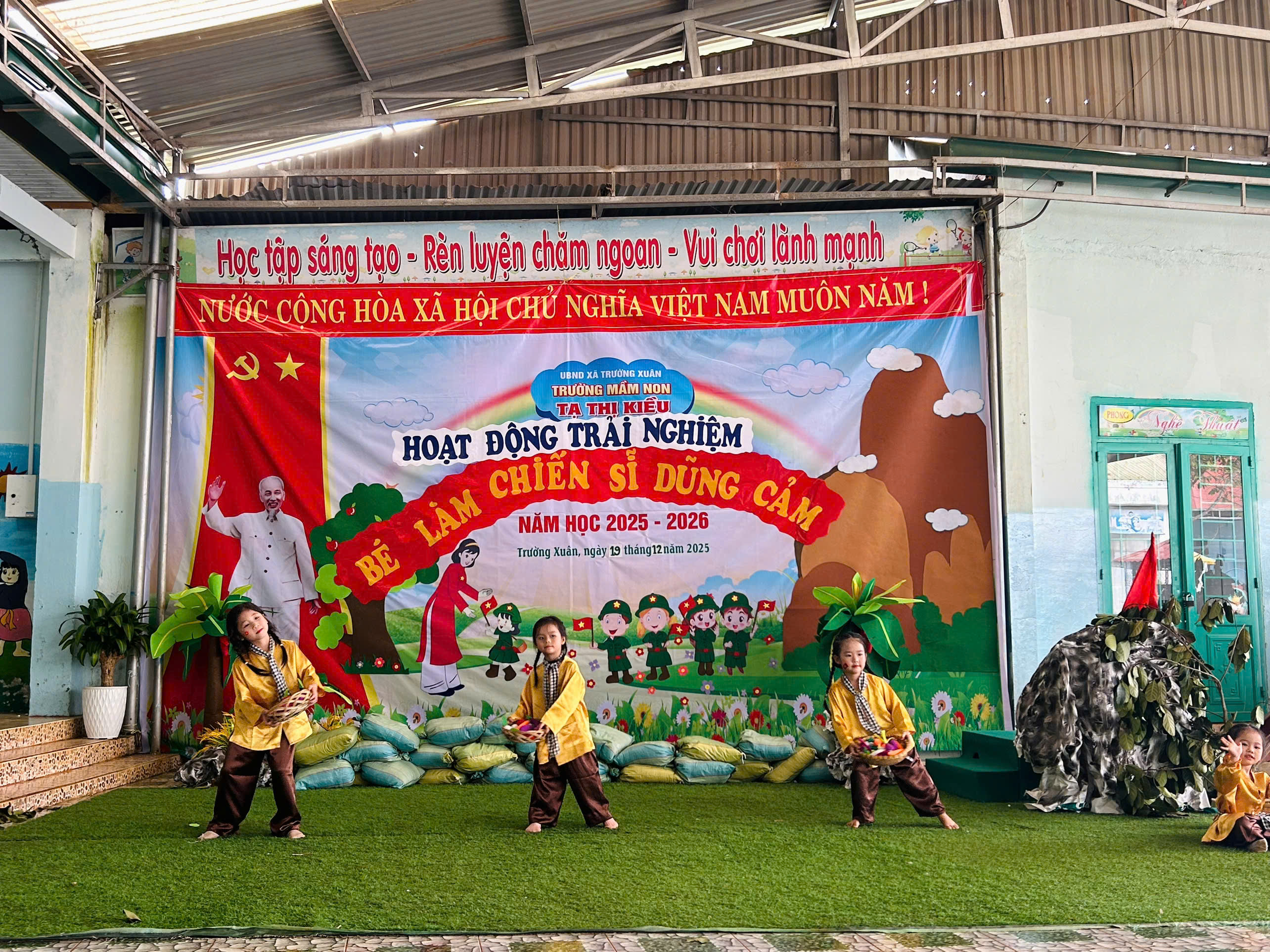 Sáng nay, Trường Mầm non Tạ Thị Kiều vui mừng tổ chức chuyên đề trải nghiệm “Bé làm chiến sĩ dũng cảm”, thiết thực chào mừng kỷ niệm 81 năm Ngày thành lập Quân đội Nhân dân Việt Nam (22/12/1944 – 22/12/2025), với sự tham dự của đại diện các nhóm, lớp mầm non tư thục trên địa bàn xã, quý phụ huynh, cán bộ quản lý, giáo viên và toàn thể các bé yêu.