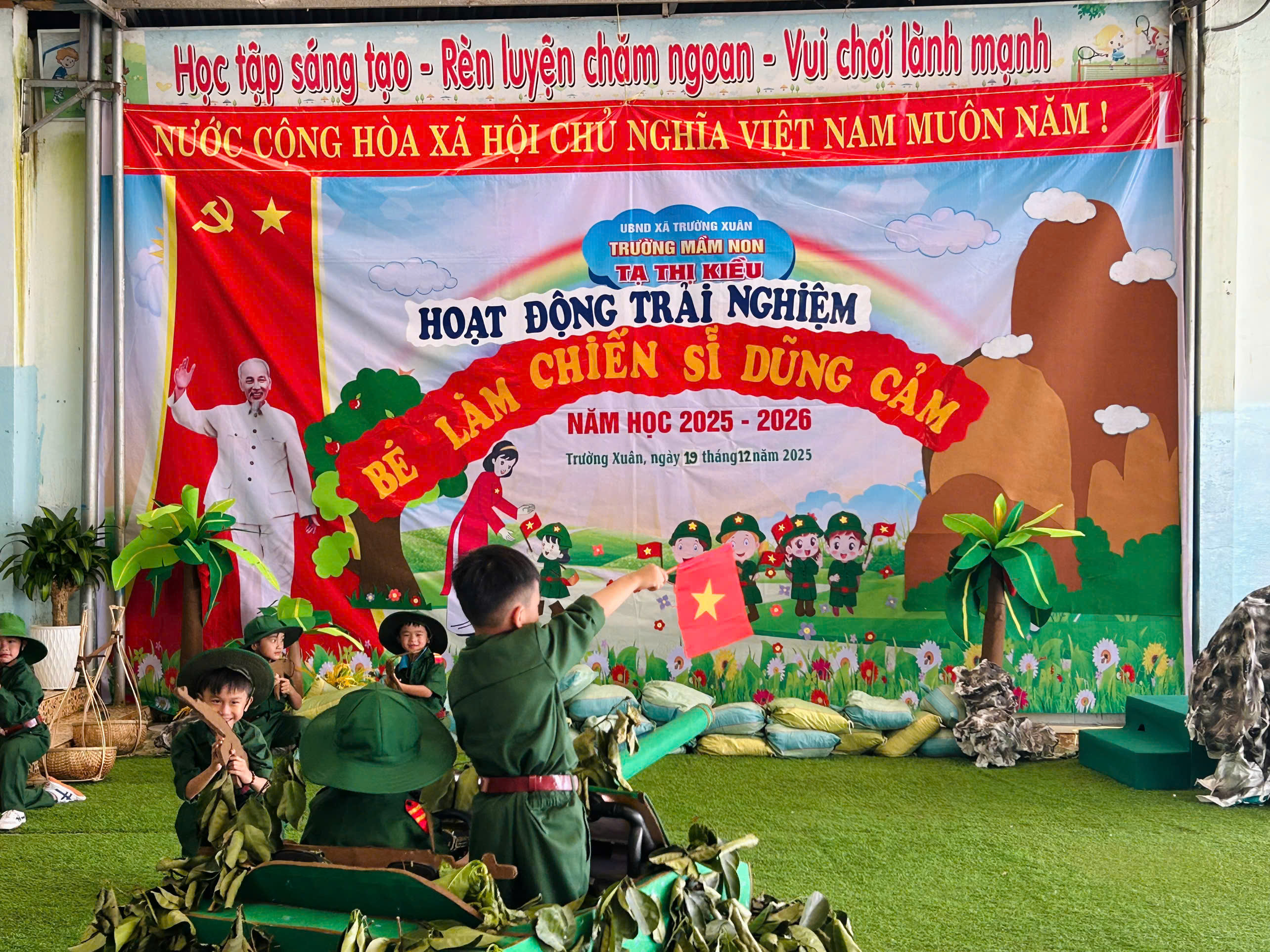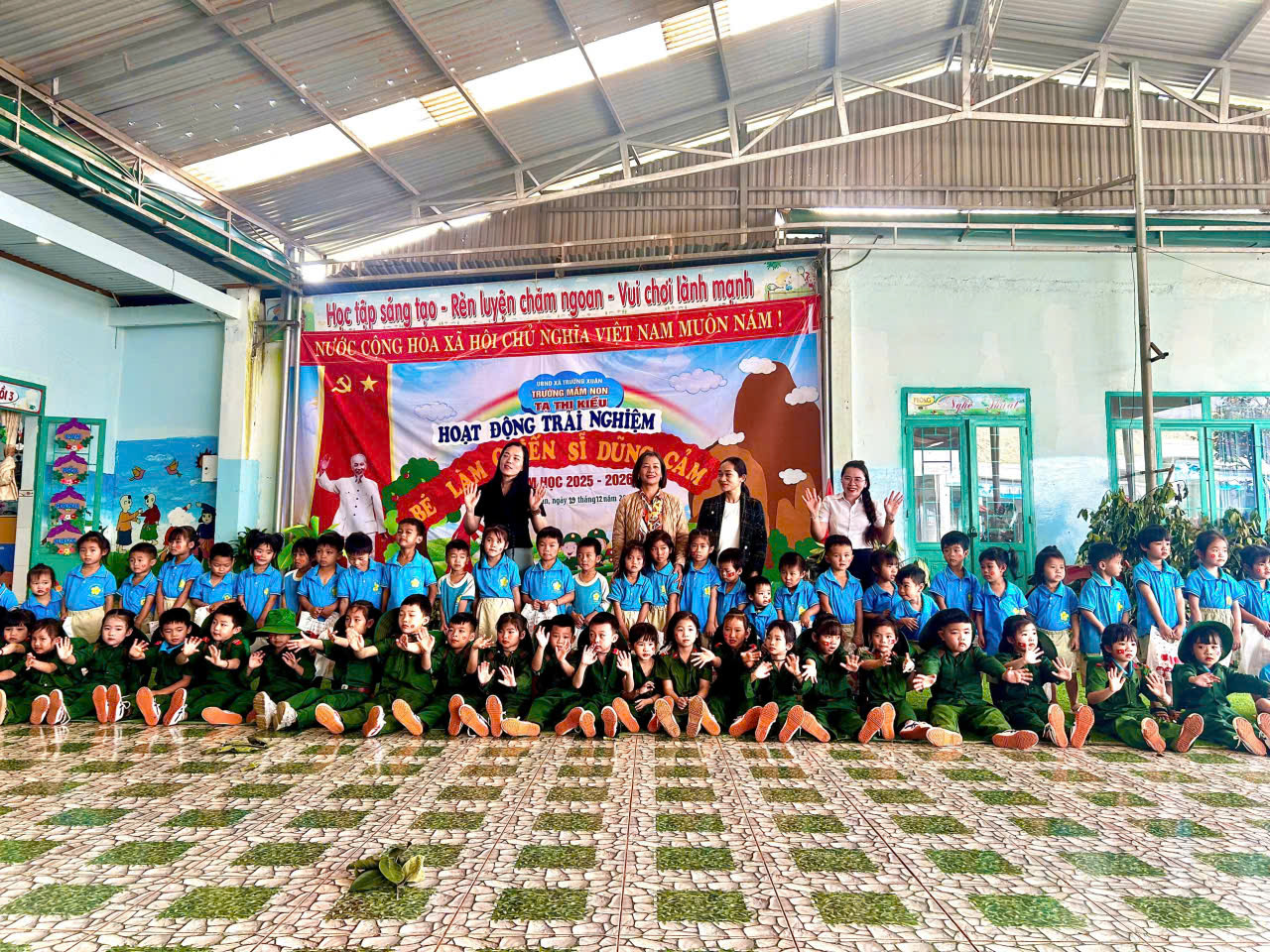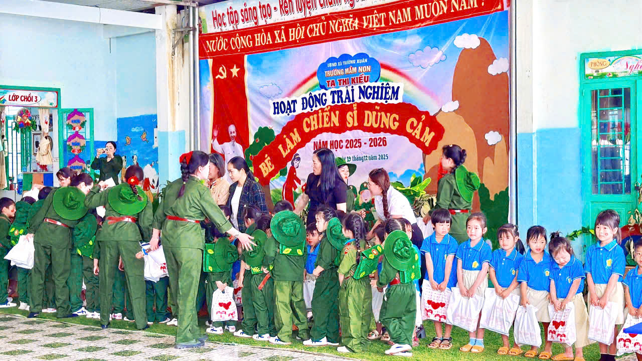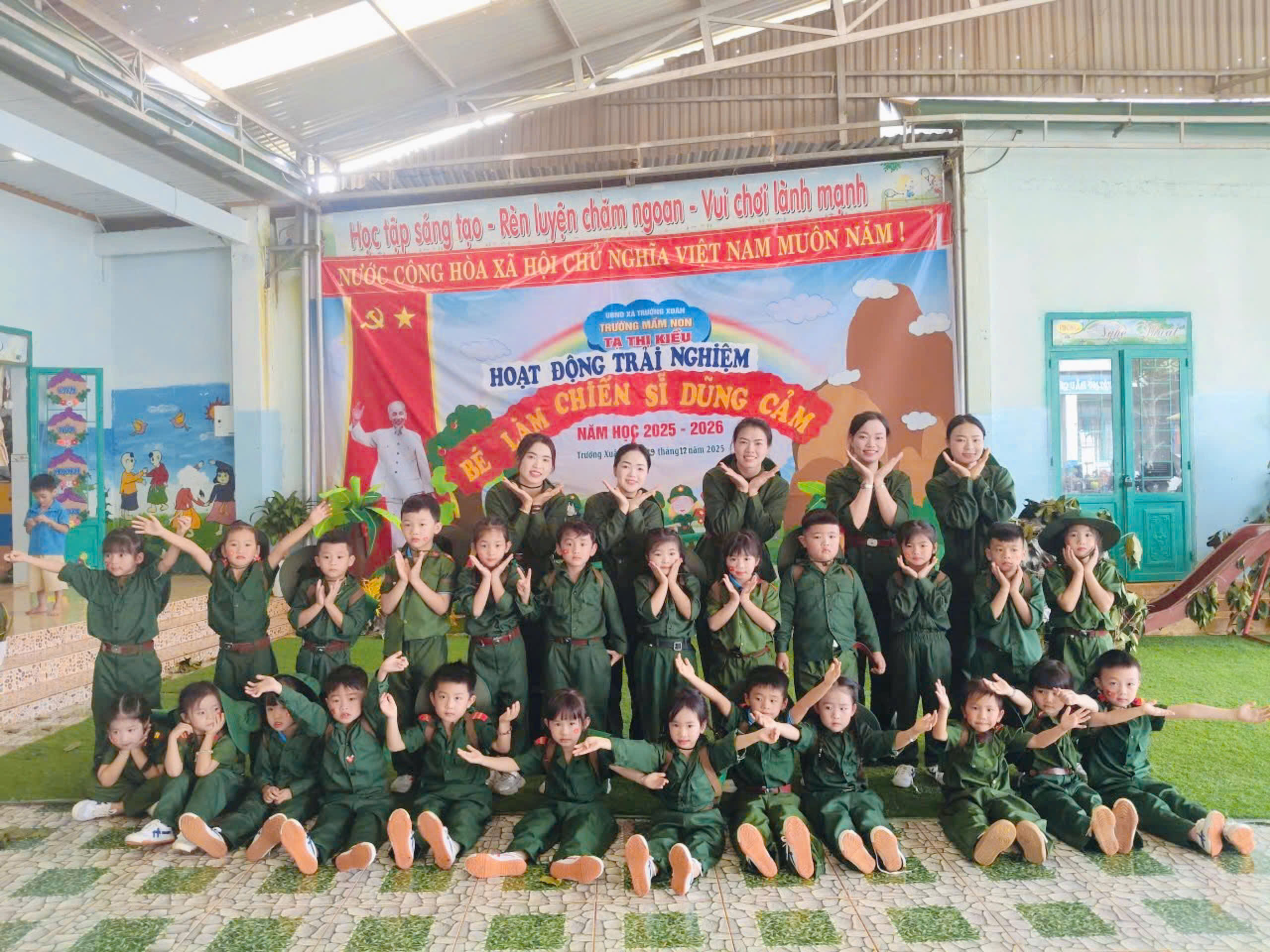 Sáng nay, Trường Mầm non Tạ Thị Kiều vui mừng tổ chức chuyên đề trải nghiệm “Bé làm chiến sĩ dũng cảm”, thiết thực chào mừng kỷ niệm 81 năm Ngày thành lập Quân đội Nhân dân Việt Nam (22/12/1944 – 22/12/2025), với sự tham dự của đại diện các nhóm, lớp mầm non tư thục trên địa bàn xã, quý phụ huynh, cán bộ quản lý, giáo viên và toàn thể các bé yêu.