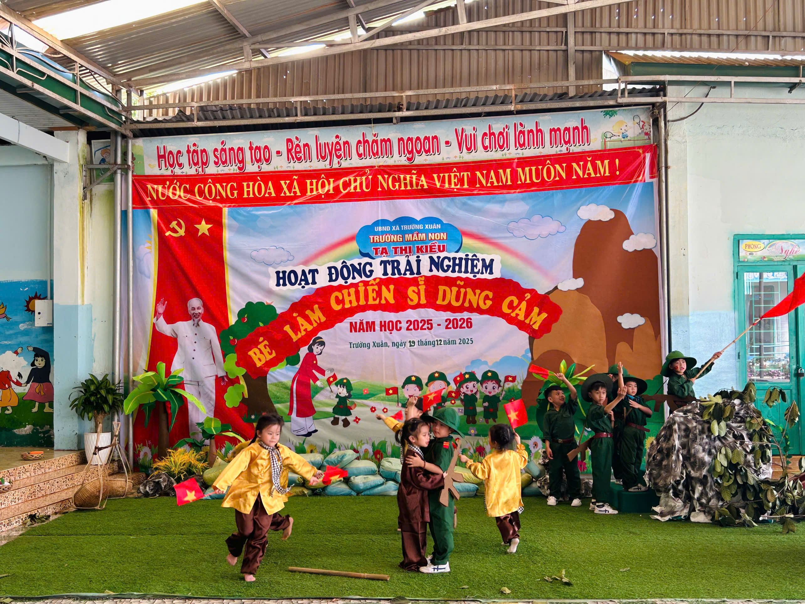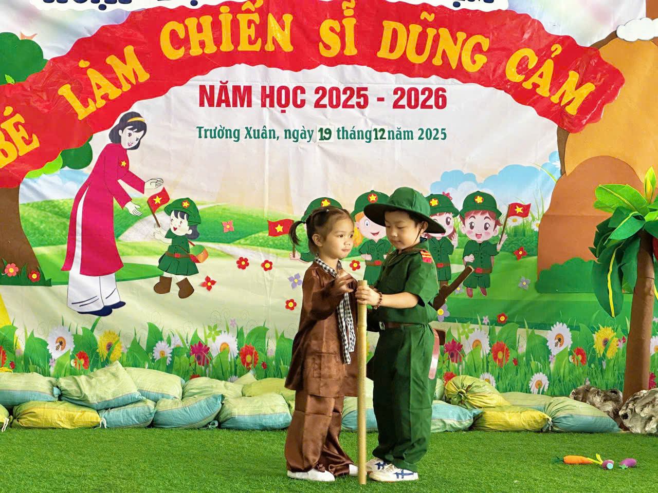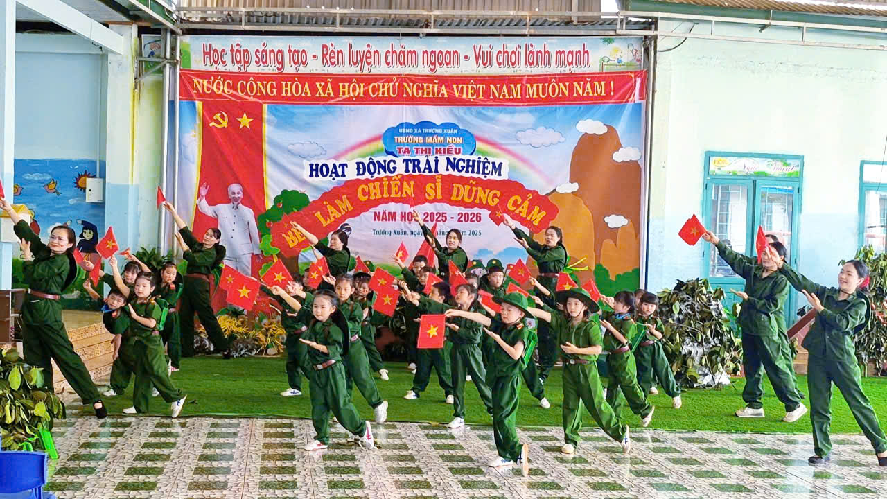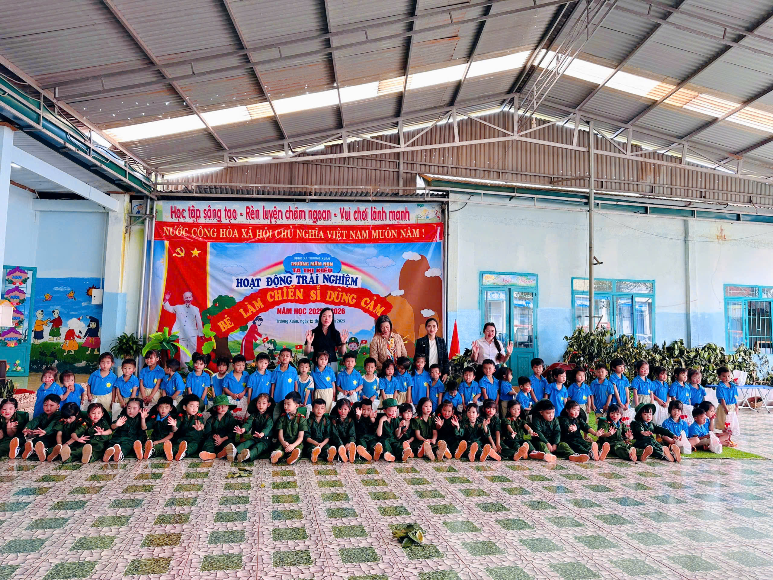 Sáng nay, Trường Mầm non Tạ Thị Kiều vui mừng tổ chức chuyên đề trải nghiệm “Bé làm chiến sĩ dũng cảm”, thiết thực chào mừng kỷ niệm 81 năm Ngày thành lập Quân đội Nhân dân Việt Nam (22/12/1944 – 22/12/2025), với sự tham dự của đại diện các nhóm, lớp mầm non tư thục trên địa bàn xã, quý phụ huynh, cán bộ quản lý, giáo viên và toàn thể các bé yêu.
