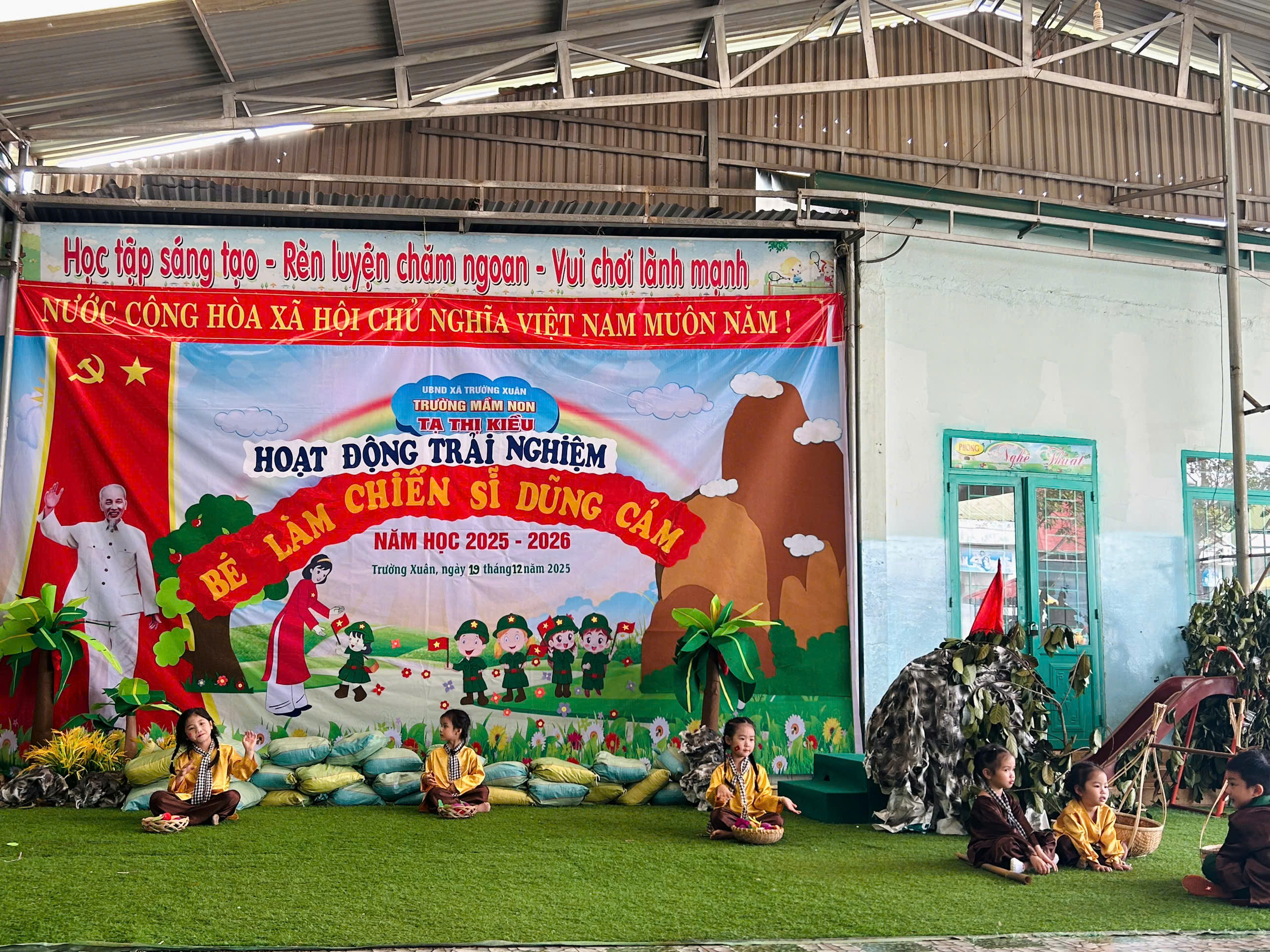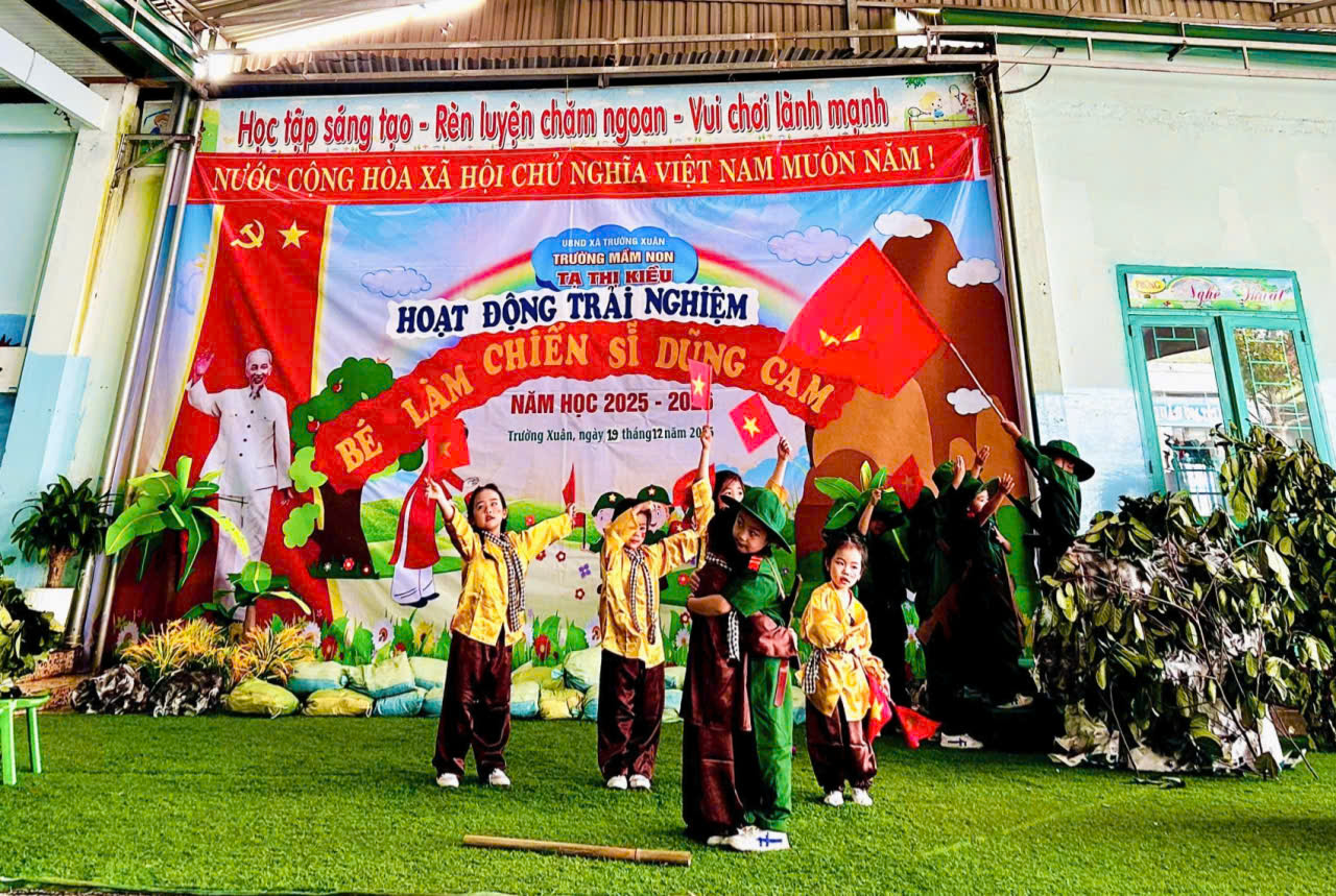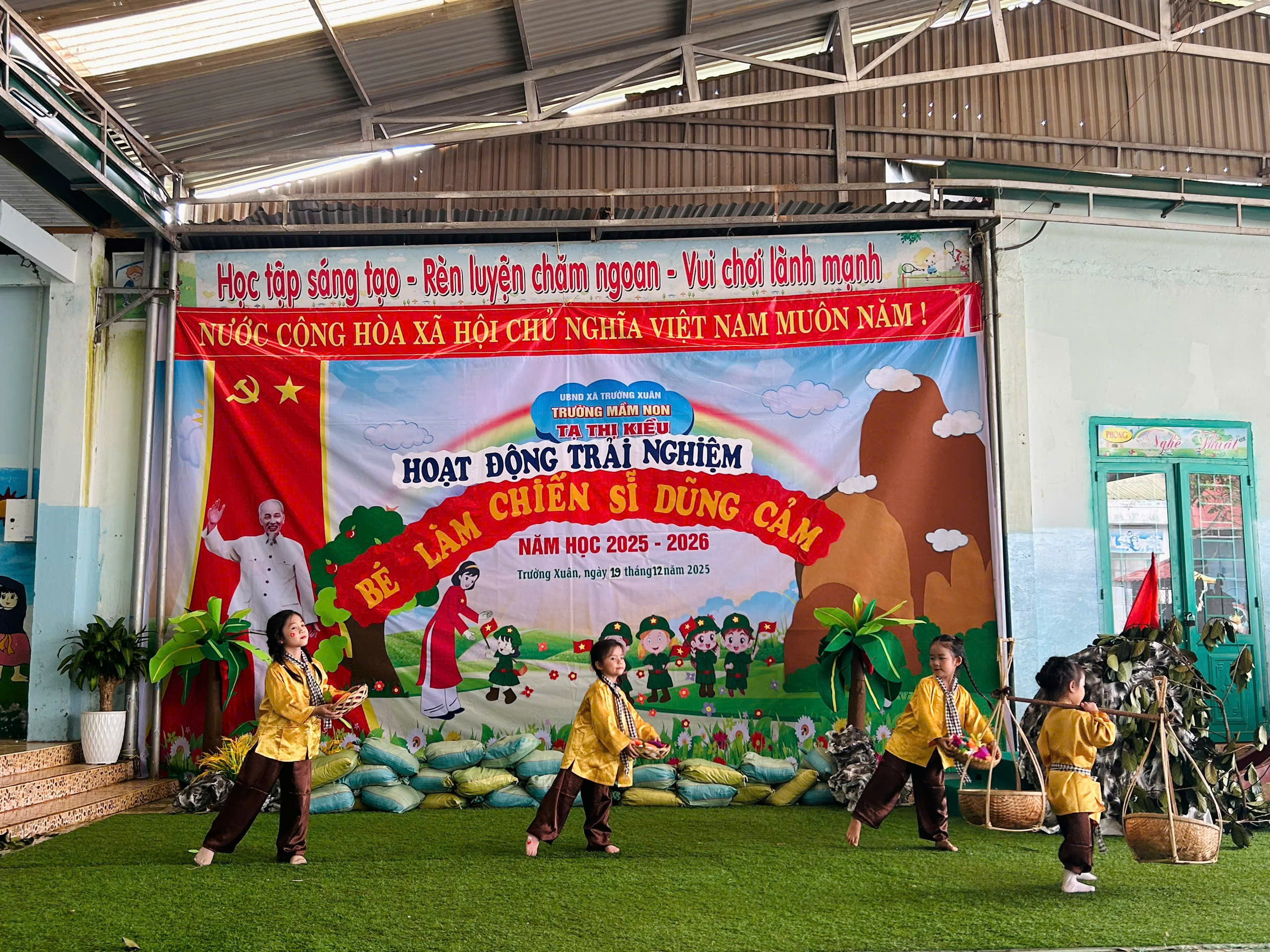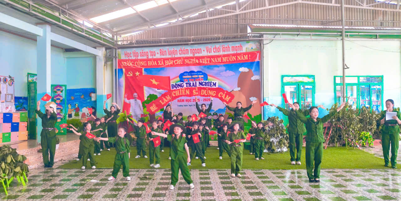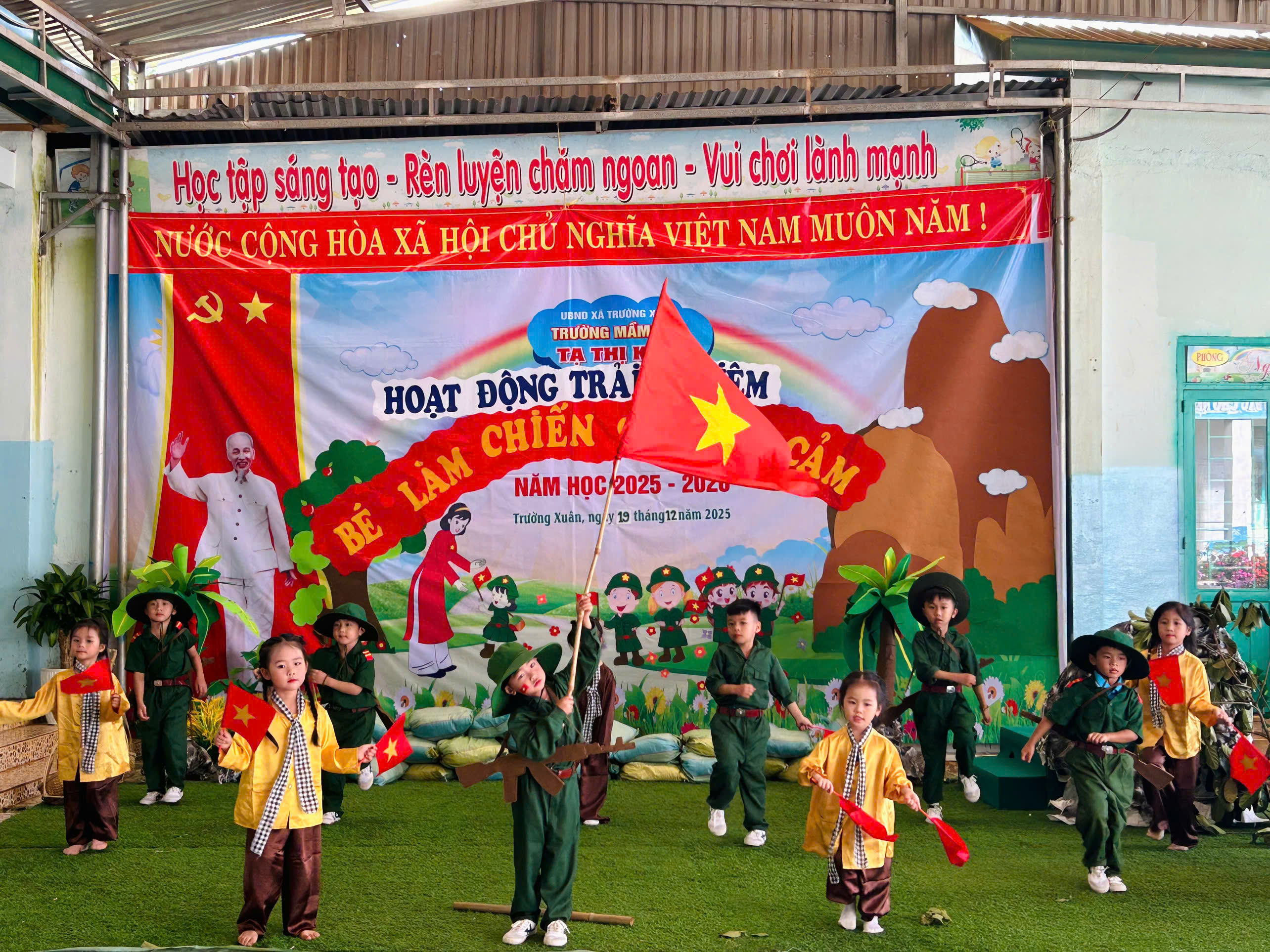 Sáng nay, Trường Mầm non Tạ Thị Kiều vui mừng tổ chức chuyên đề trải nghiệm “Bé làm chiến sĩ dũng cảm”, thiết thực chào mừng kỷ niệm 81 năm Ngày thành lập Quân đội Nhân dân Việt Nam (22/12/1944 – 22/12/2025), với sự tham dự của đại diện các nhóm, lớp mầm non tư thục trên địa bàn xã, quý phụ huynh, cán bộ quản lý, giáo viên và toàn thể các bé yêu.