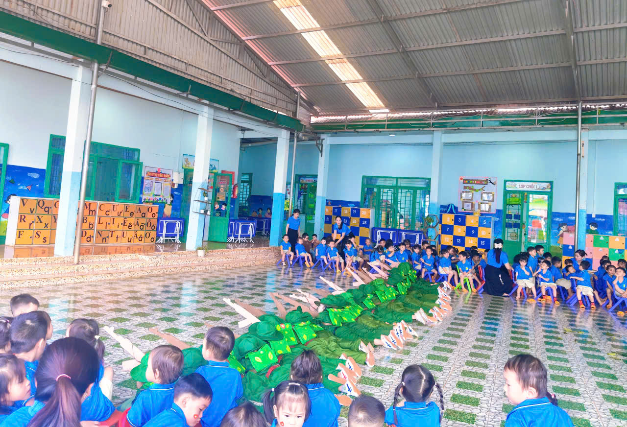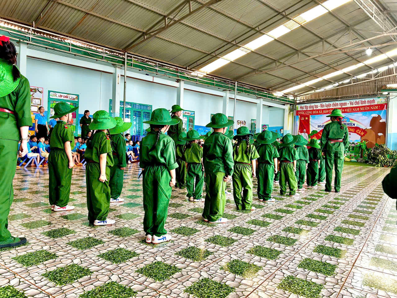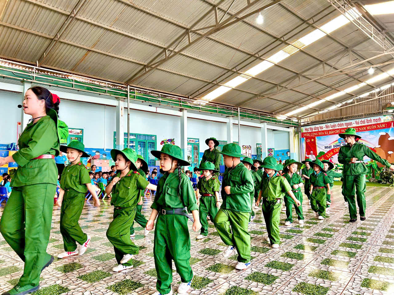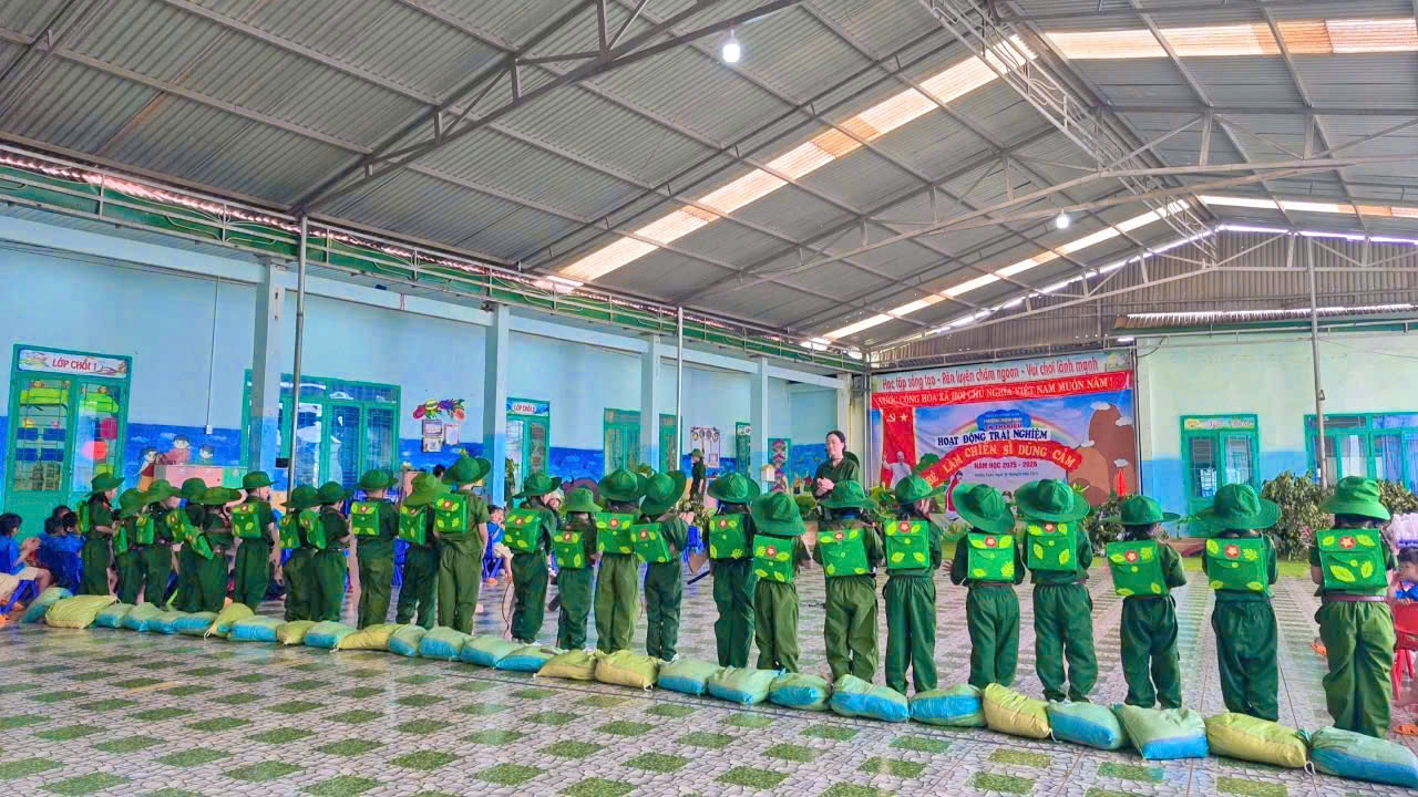 Tiếp nối là hoạt động “Chung tay đắp đê giúp dân”, nơi các “chiến sĩ nhí” cùng nhau vượt thử thách, vận chuyển vật liệu, góp sức bảo vệ cuộc sống bình yên cho nhân dân. Hoạt động không chỉ rèn luyện thể chất mà còn giáo dục trẻ tinh thần đoàn kết, trách nhiệm và sẻ chia.